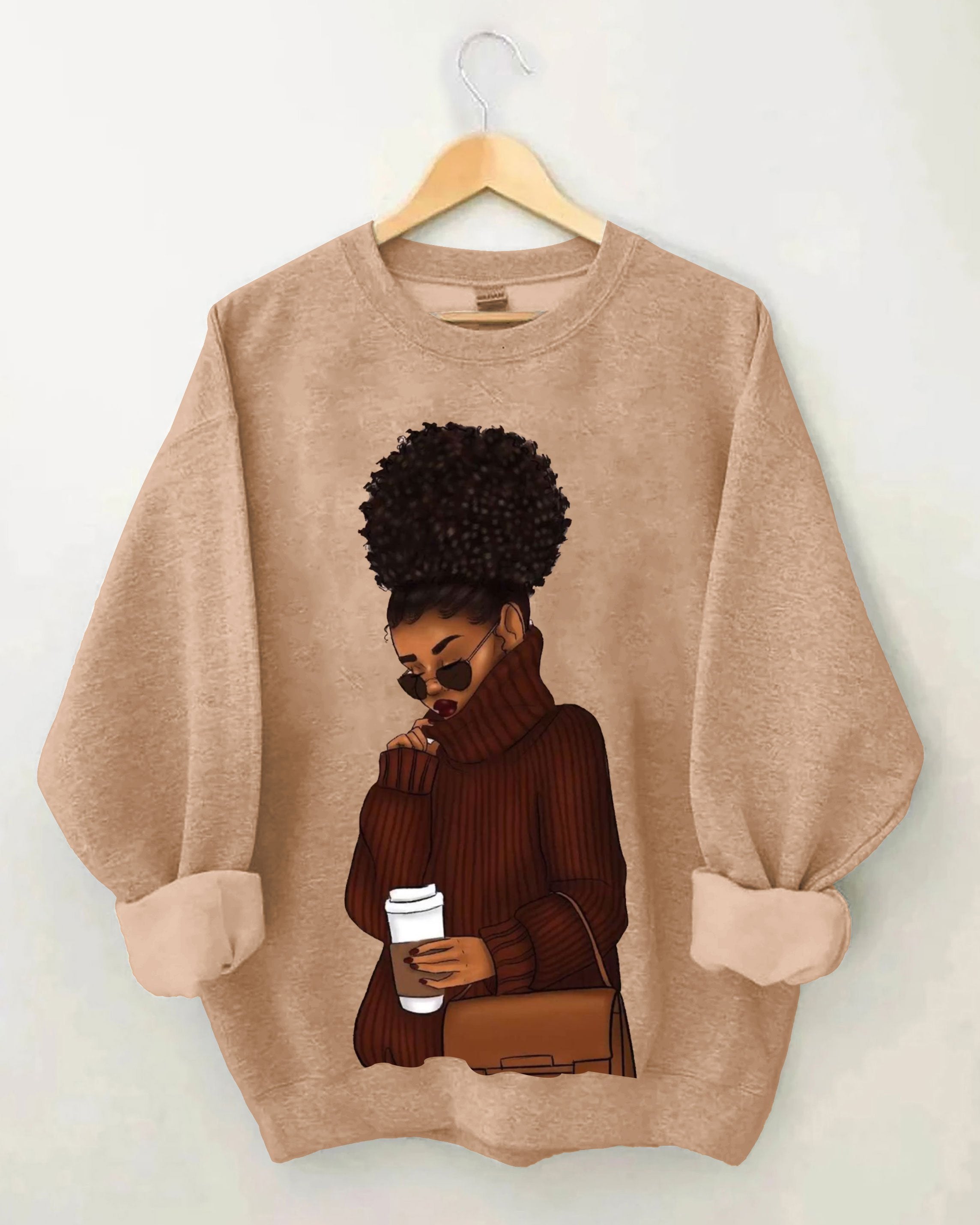 Coffee Sweater Afro Girl Long Sleeve Sweatshirt