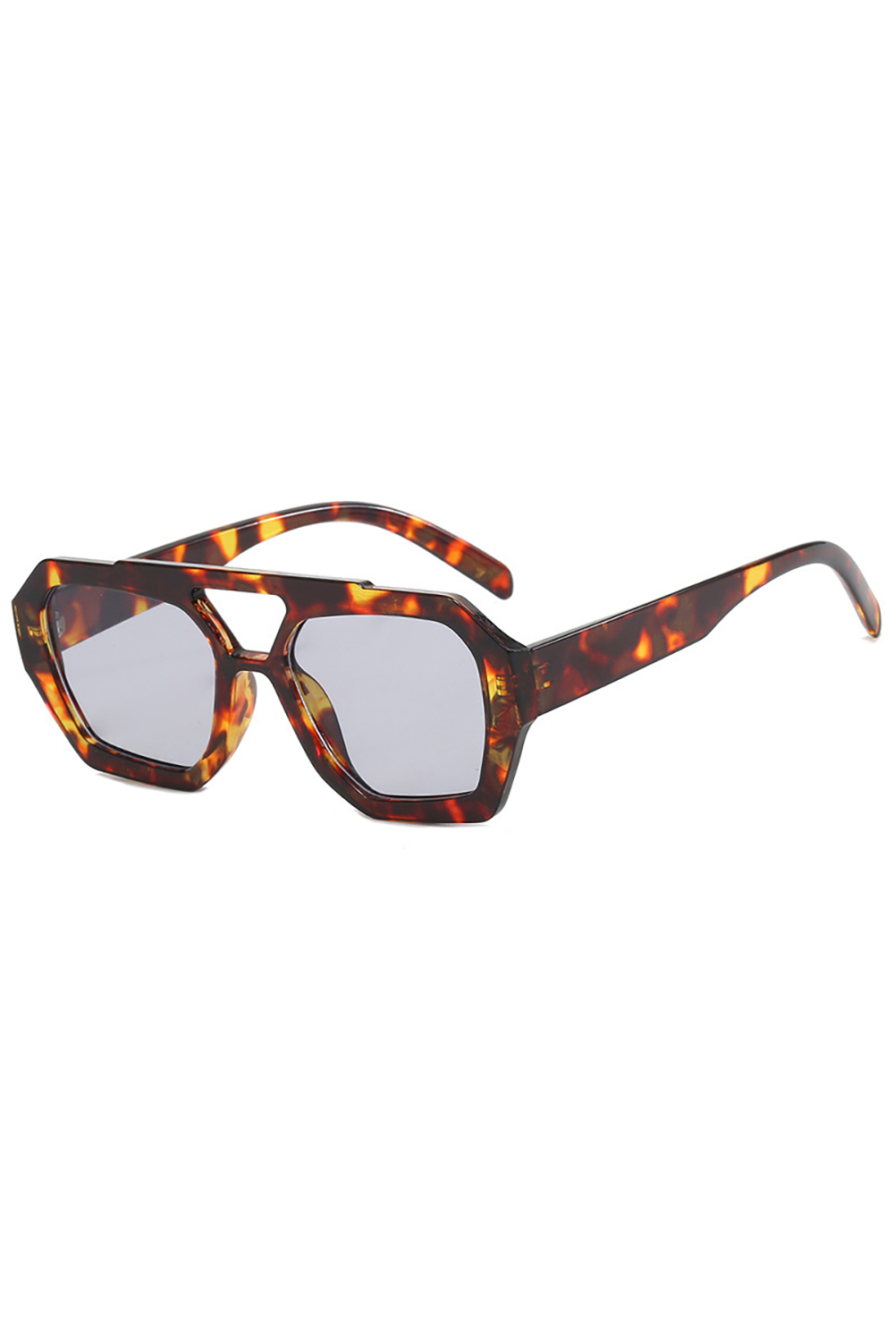 Light Gray Lens Flame Print Irregular Frame Outdoor Sunglasses