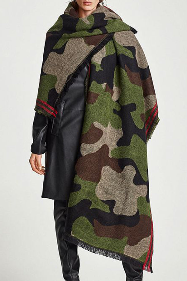 Camo Print Tassel Shawl Scarf