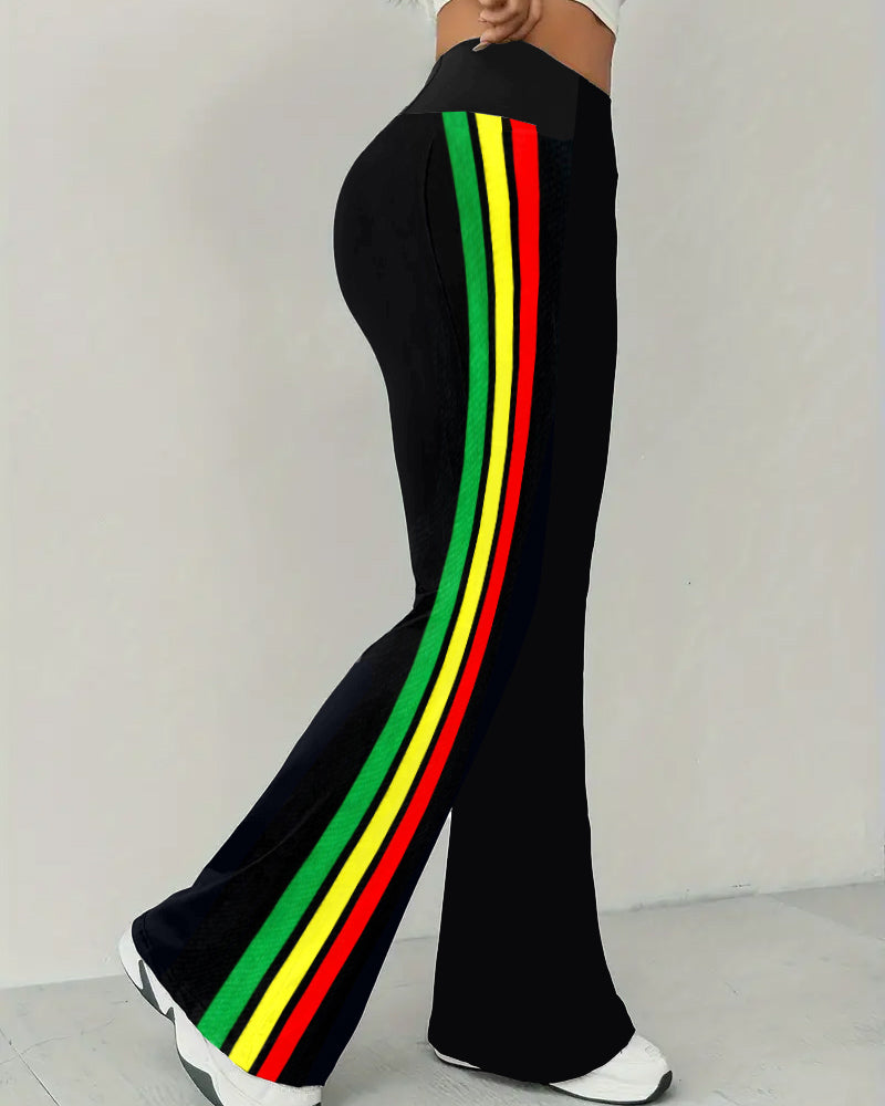 Reggae Strip Print Wide Trouser Legs Pants