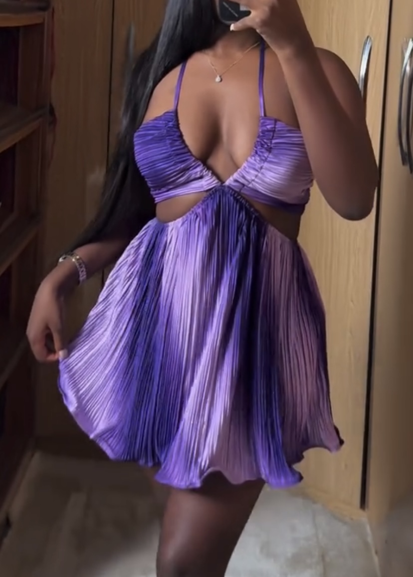 Strap Tube Top Lace-up Pleated Hollow Mini Dress