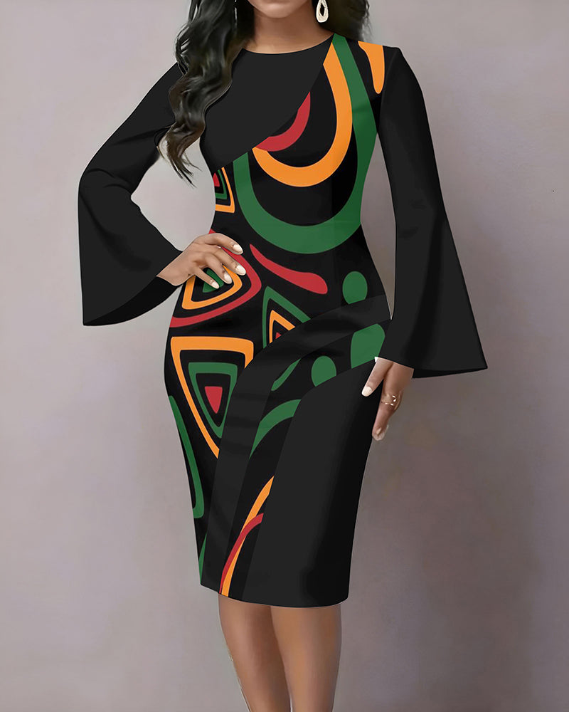 Tribal Totem Splicing Flared Sleeves Mini Dresses
